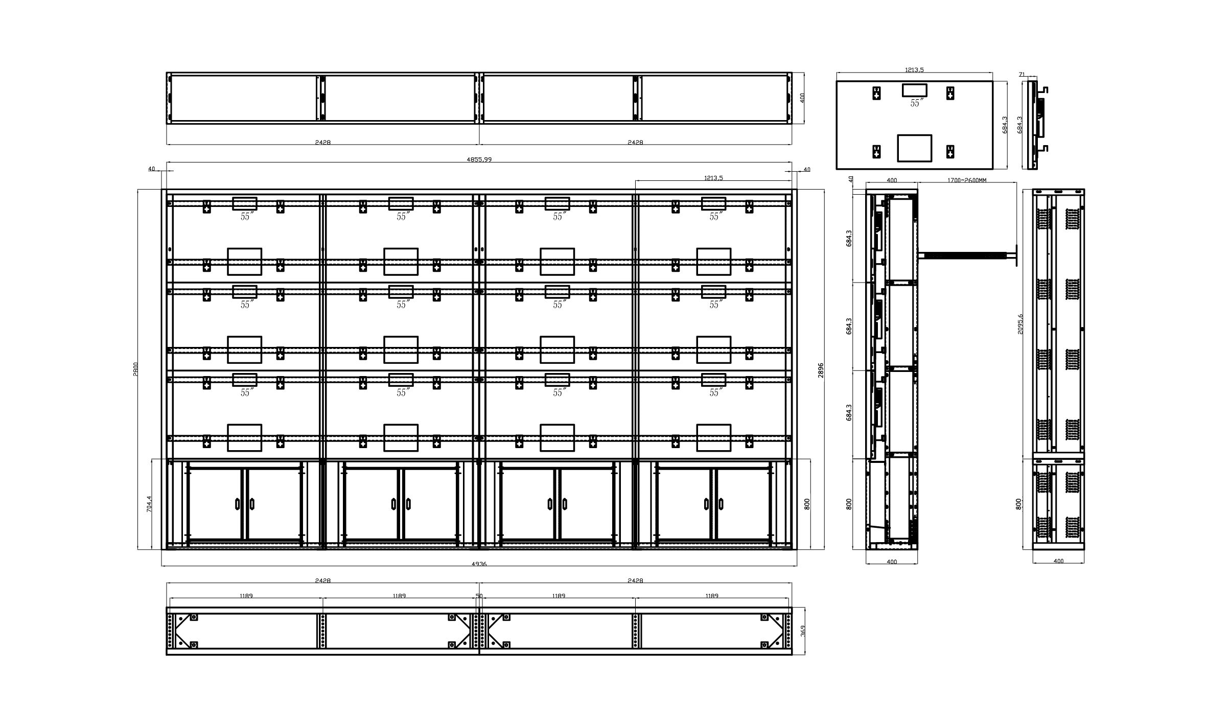 根據(jù)施工現(xiàn)場(chǎng)結(jié)構(gòu)狀況,大屏的結(jié)構(gòu)我們采用抽屜式設(shè)計(jì)方案,所有的顯示單元都可以獨(dú)立抽出,不需要?jiǎng)诱麄€(gè)拼接墻就可以進(jìn)行屏體的拆卸和安裝。